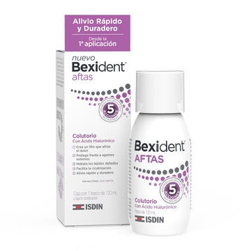 El colutorio Bexident Aftas 120ml está formulado para aliviar rápidamente el malestar causado por las aftas bucales. Su acción antiséptica promueve la cicatrización y previene infecciones.