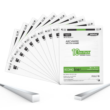 Llévate el combo de 10 carteras o paquetes (5 upper + 5 lower) de Arcos Rectangular / Cuadrado NiTi Econoline (100 pzs) a un súper precio. Ideales para obtener tratamientos más confortables para sus pacientes en menor tiempo.