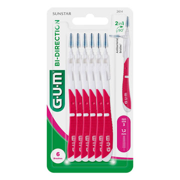 GUM® BI-DIRECTION Cepillo Interdental 1.2MM, ayuda a cepillar los dientes anteriores y posteriores en los espacios que el cepillo convencional no puede alcanzar gracias a su cuello flexible con una angulación de hasta 90°.