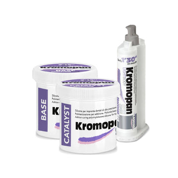 - KromopanSil Putty (base + catalizador, 2 x 150 ml.), KromopanSil Body (1 x 50 ml), 6 puntas de mezcla y 6 puntas intraorales.
