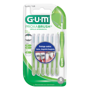 Los cepillos interdentales PROXABRUSH® han sido diseñados para remover la placa dental de las zonas interproximales y durante la ortodoncia. Seguros y fáciles de usar. Características: Cabeza en forma triangular que facilita el acceso a los espacios interproximales. Cerdas impregnadas con Clorhexidina. Cuello flexible para acceder a espacios interproximales en zonas posteriores. Tapa protectora Existen diferentes tamaños que se adaptan a los espacios interproximales que presenten cada paciente: 1.1 mm Fino Cónico.