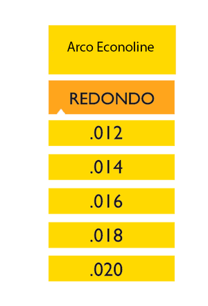 Calibres Redondos: .012, .014, .016, .018, .020.