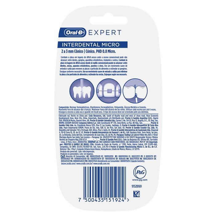 Complementa tu cepillado con el cepillo interdental Oral-B para conseguir sacar los restos de comida que se quedan entre las piezas o entre tus dientes. Hacemos cepillados muy rápidos y olvidamos que entre los dientes también se queda comida, el cepillo interdental Oral-B te ayuda a limpiar en lugares donde el cepillo convencional no puede alcanzar sus cerdas son flexibles y se deslizan entre tus dientes ayudando a remover comida, placa o cualquier partícula de alimento, mientas estimula y masajea tus encías.